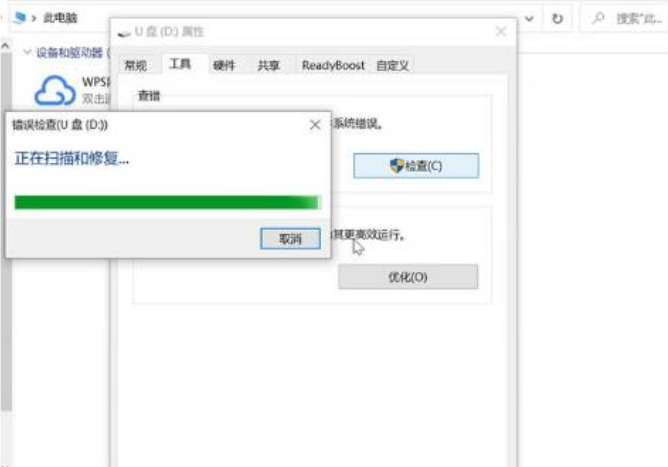 2.在屬性頁面中選擇“工具”項,并點擊頁面右側的“檢查”按鈕自動檢查修復;