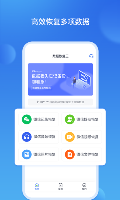 數據恢復王這是一款十分專業的手機數據恢復軟件,它通過較為強大的系統底層掃描檢測技術,快速的幫助我們找回并恢復您丟失的手機數據,支持誤刪還有未保存微信語音、圖片、視頻、文件恢復。