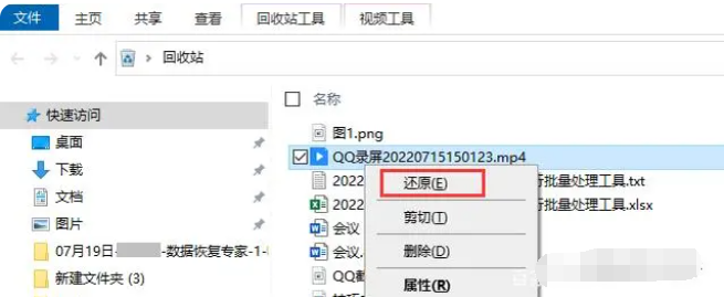 如果電腦的數據被刪除后,一般不是永久刪除的話,通常會被保存在回收站里面。這種情況下,我們只需根據源數據的位置、大小還有源文件的刪除日期進行查看,在回收站內找到刪除的數據后右擊文件夾,在彈出的對話框中點擊“還原”功能,這樣就能把刪除的數據恢復至之前刪除的位置。