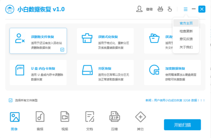 1、如果以上的方法恢復不了數據,那就用專門的數據恢復工具。這里以好用的小白數據恢復軟件為例,打開這個軟件后,選一個合適自己的模式。