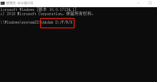 鍵入:chkdsk 并按Enter鍵來檢查損壞硬盤中的錯誤