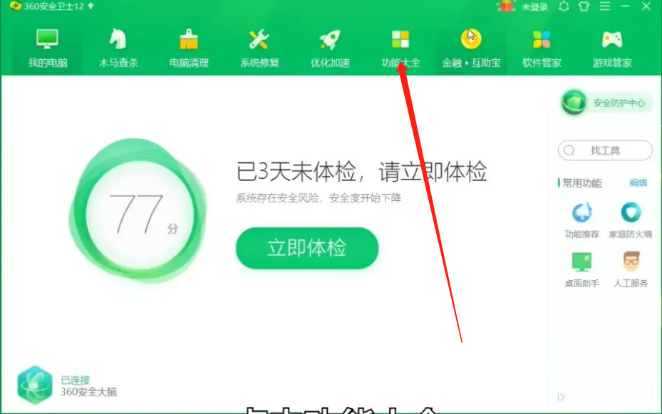 1、打開電腦下載的360安全衛士,點擊功能大全。