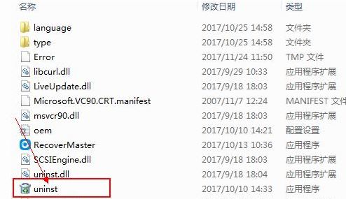 2、在打開的文件里找到“uninst”這個文件,并帶有回收站圖標,再雙擊這個文件。