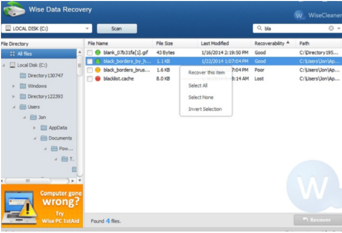 明智的數據恢復這款工具用于恢復已刪除的照片,文檔,視頻以及電子郵件等等。不過僅適用于Windows 10/8/7,XP還有Vista。