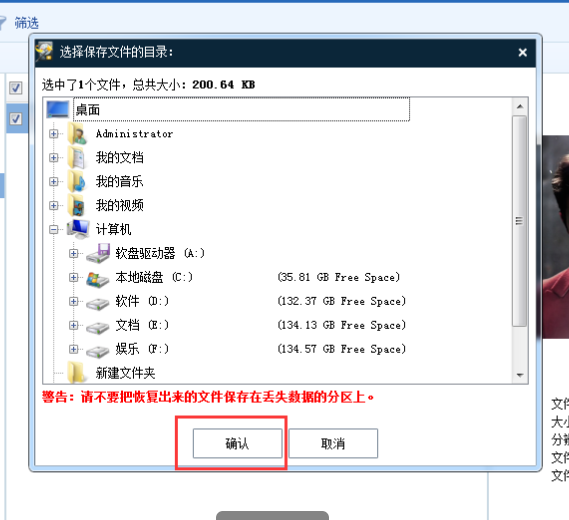 3、耐心等待掃描結束,在丟失數據的列表中手動勾選我們需要恢復的數據,保存到安全磁盤中,回收站被清空的數據即可成功恢復出來。