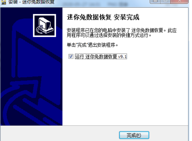 3、迷你兔數據恢復工具安裝結束,點擊完成即可。