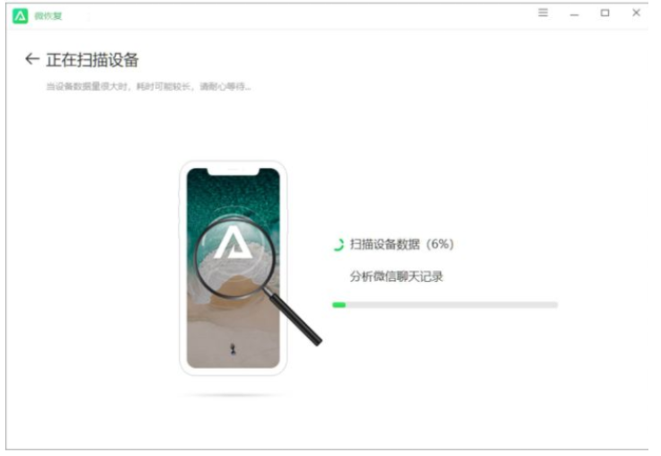 3、然后點擊軟件上的新的掃描按鈕,將會開始掃描并分析手機中的微信聊天記錄。