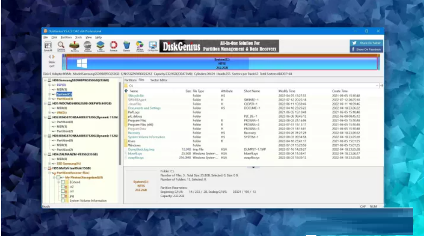 DiskGenius 使硬盤管理變得容易,因為它將幾組有用的功能集成到一個方便的軟件包中。因此,您可以使用它來恢復丟失的數據、編輯分區、備份和恢復重要文件等等。