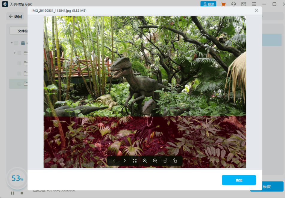 3、通過【文件視圖】這種模式找到丟失的目標文件,在右側直接預覽或者是點擊放大預覽,確認后點擊右下角的“恢復”按鈕即可找回丟失的文件。