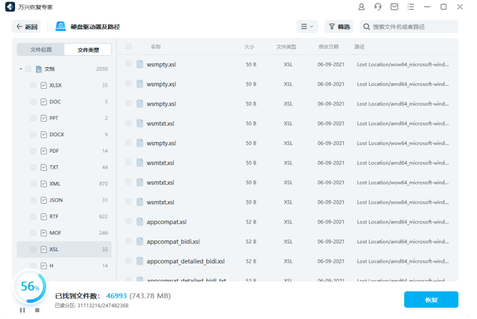 2、等待軟件自動掃描外接u盤,掃描結束后用戶可以通過左側的【路徑視圖】和【文件視圖】兩種方式來瀏覽掃描出的軟件。