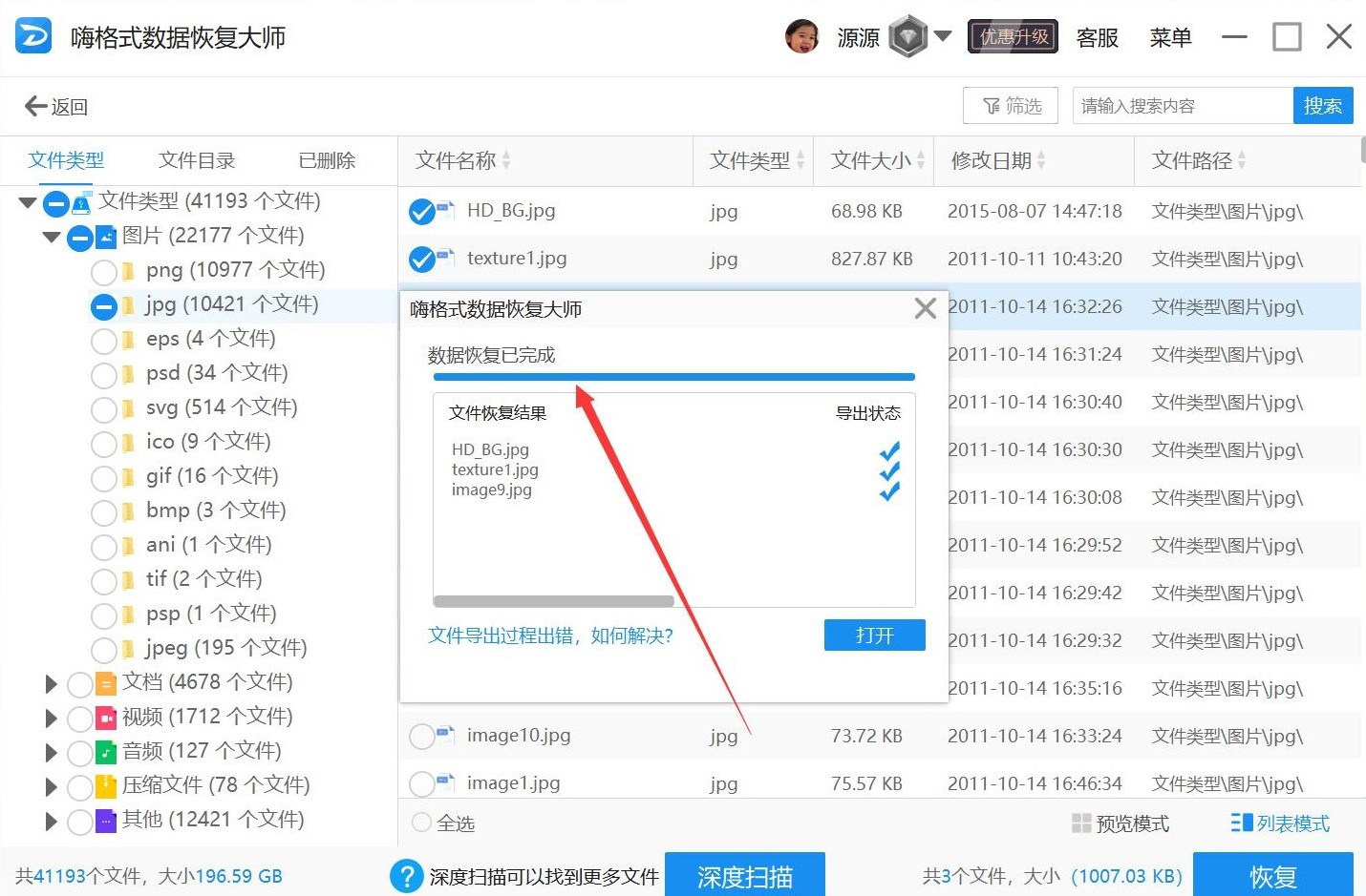 3、數據掃描好后,選擇要恢復的文件,點擊“恢復”按鈕。