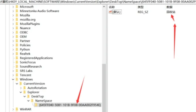 2、依次展開注冊表中的這些項,最后找到“Namespace”這一項。
