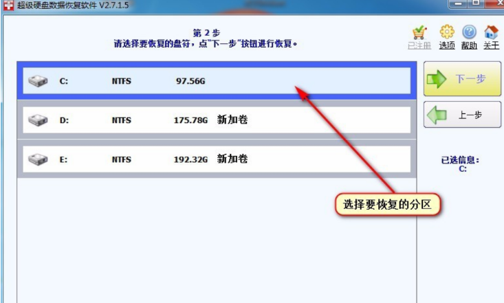 2.選擇自己需要恢復的硬盤盤符,鼠標點擊下一步。