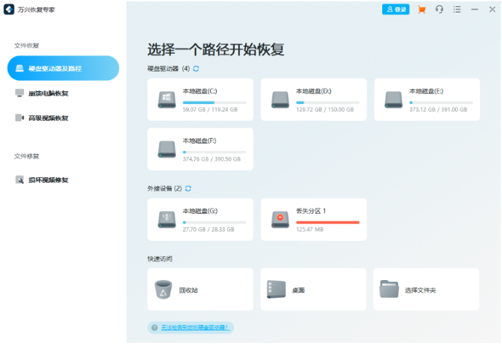 1.萬興恢復專家是一款專門致力于數據恢復的軟件,Windows用戶可獲得累計100M的免費額度,非常適用僅需要恢復單個Word文檔或Excel表格的用戶。