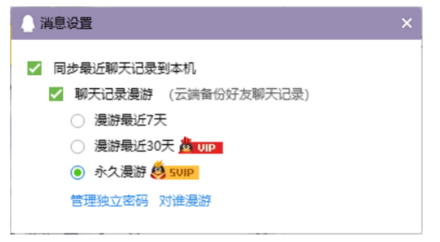 在手機QQ中找到設置進入選擇通用可以看到里面的聊天記錄,點擊就可以看到里面的功能,選擇聊天記錄漫游之后選擇里面需要漫游的時長,普通用戶最多可以漫游七天,svip可以漫游兩年,設置漫游之后會根據設置規則進行漫游聊天記錄。