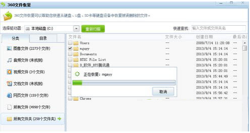 4.請大家耐心等待掃描完成之后,即可查看可以恢復的文件夾。