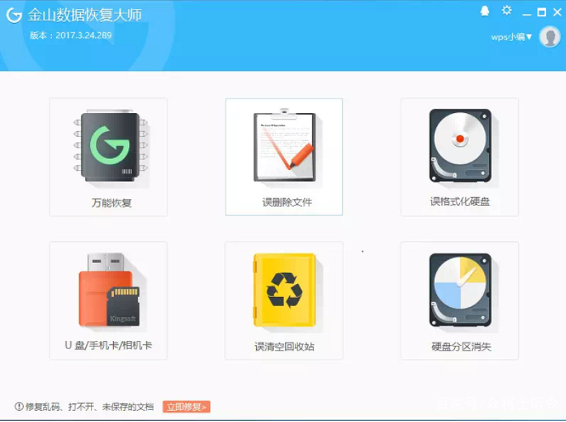 有哪些好又快數據恢復工具呢?金山數據恢復大師這是金山旗下的一款數據恢復軟件。金山大家應該都不陌生吧,小時候我們玩的金山打字,還有大家使用的WPS,其實都是金山的產品。金山數據恢復大師的界面也十分簡潔,但是看它的分類,我們發現并不能滿足我們所有的恢復情況。相比EasyRecovery,它沒有恢復電子郵件以及多媒體類別的分類。但是它有兩種針對硬盤數據恢復的類別以及U盤、手機卡、相機卡的恢復。有這方面需求的用戶可以一試。