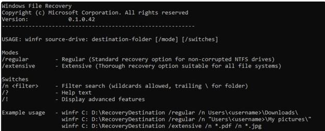微軟出品必屬精品,雖然沒有圖形界面,但他是完完全全免費的,就是有點費人!支持三種恢復模式:普通模式、分段模式(segment mode)、簽名模式(signature mode),三種模式對應不同的恢復文件場景需求。