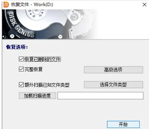 2、進入恢復文件窗口中,默認設置并點擊“開始”按鈕開始掃描。