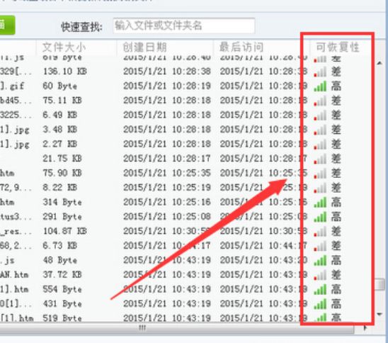 3、掃描進行后360文件恢復作用會顯示遺失文件的狀況,大家見到可恢復性分成好多個等級,我們可以選擇自身要想恢復的文件試著開展恢復。