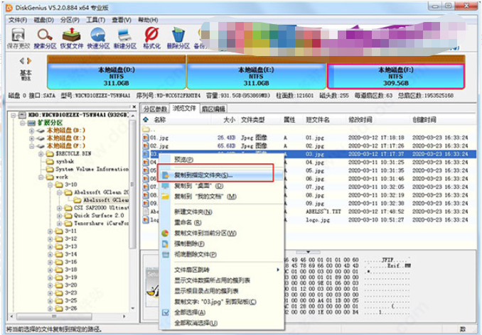 6、在軟件中選擇我們確定想要恢復的文件,鼠標右鍵點擊并選中"復制到指定文件夾"按鈕。