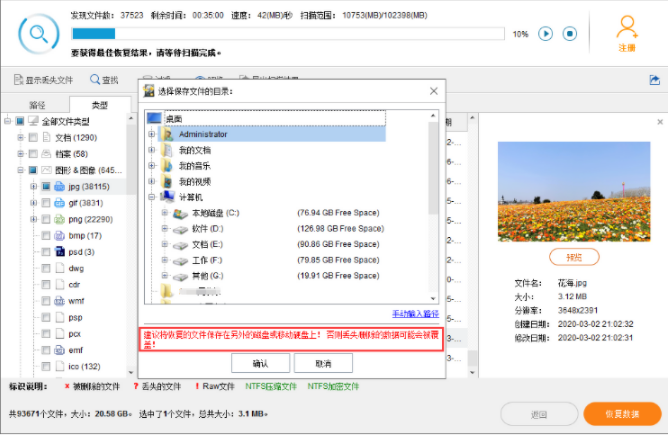 步驟四:勾選需要恢復的照片,重新把丟失的照片保存在安全的磁盤當中,恢復出來以后點擊查看即可。