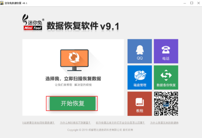 1.點擊打開迷你兔數據恢復工具直接選擇左邊的【開始恢復】,即可成功進入磁盤掃描頁面。