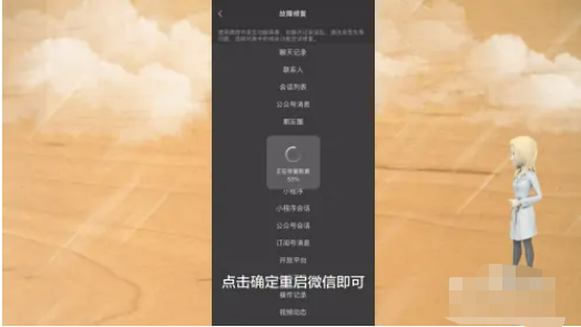 3、在功能選項中點擊故障修復,選擇需要恢復的數據,點擊確定重啟微信即可。