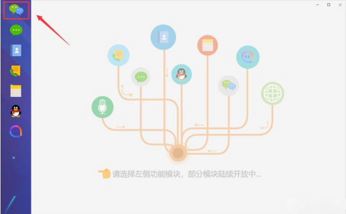 3、掃描完成后會彈出“模塊選擇”窗口,請選擇您需要恢復的模塊,以“微信”為例,點擊第一個“微信記錄查看與恢復”;