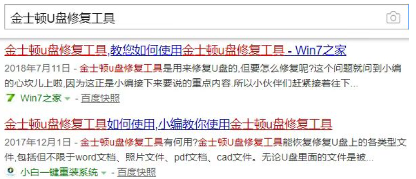 1、瀏覽器搜索并下載金士頓U盤修復工具