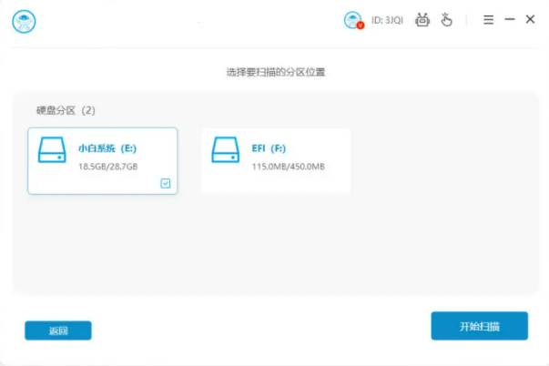 2、選擇好恢復文件的類型后,我們再對需要恢復的分區進行掃描,選擇自己需要掃描的分區然后執行。