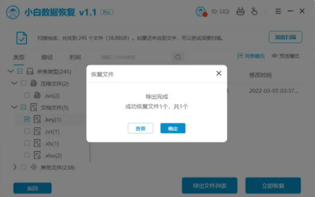 5、當所有文件恢復完成后,點擊確定確認無誤就可以關閉軟件了。