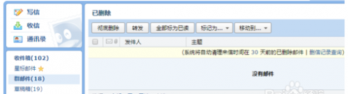 1、首先進入郵箱,選擇郵箱左手邊的"已刪除"選項,即可看到已經刪除的郵件.選擇你要恢復的郵件