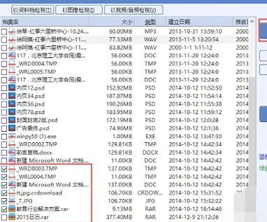 4、在列表中,請勾選想要恢復的數據。然后點擊右側的“存儲檔案”選項