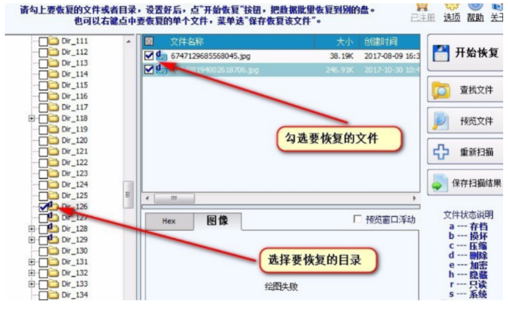 3.選擇恢復的文件以及恢復的目錄,點擊開始恢復;