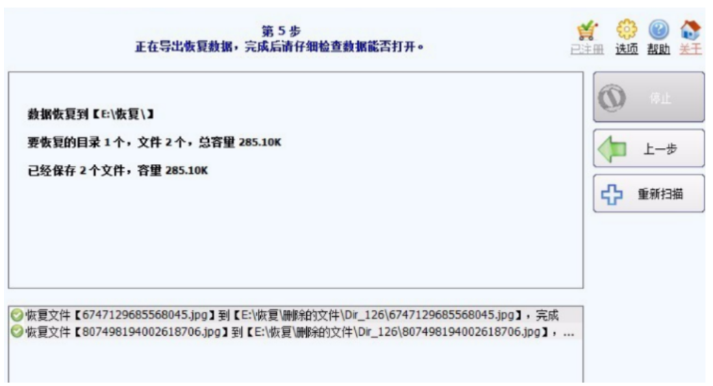 4.軟件恢復并導出數據,提示完成后可建成被恢復的數據是否可以打開就可以啦。