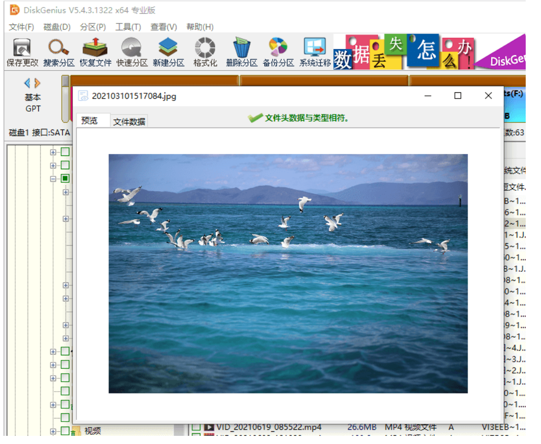 軟件版本:數據恢復軟件+DiskGenius軟件