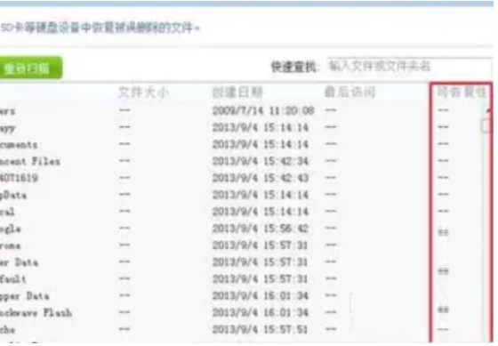 5、掃描結束后,可以觀察下丟失文件的可恢復性:高、較高、差、較差。顯示高和較高兩種文件的可恢復性比較好,差與較差的文件夾是可以恢復的但不一定能找到自己想要的文件。
