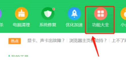 1、打開電腦安裝好的360安全衛士,點擊功能大全進入。