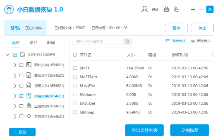 3、等待軟件開始掃描電腦中的數據,掃描好選中要恢復的數據文件,點擊“恢復”即可。