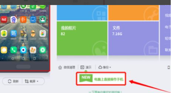 3、手機掃描二維碼,手機上必須要有360手機助手,然后點擊電腦上直接操作手機。