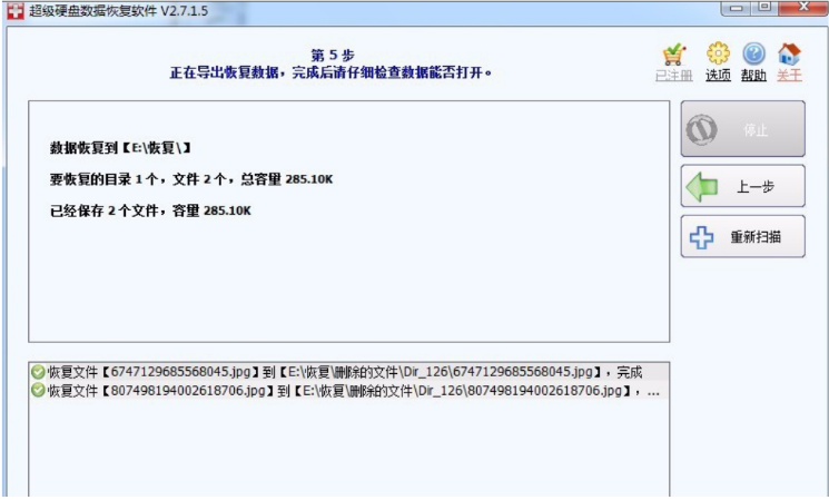 4.軟件恢復并導出數據,提示完成后即可建成被恢復的數據是否可以打開即可。