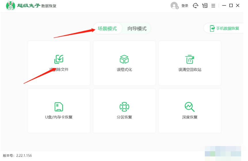 1、首先下載安裝云騎士數據恢復軟件,打開軟件操作界面以后,根據數據丟失情況,選擇一個合適的模式進行恢復,這里選擇情景模式中的誤刪文件。