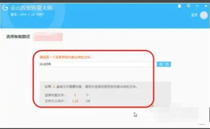 6、然后找到需要恢復的數據目標路徑,注意一下不能和原分區一樣。