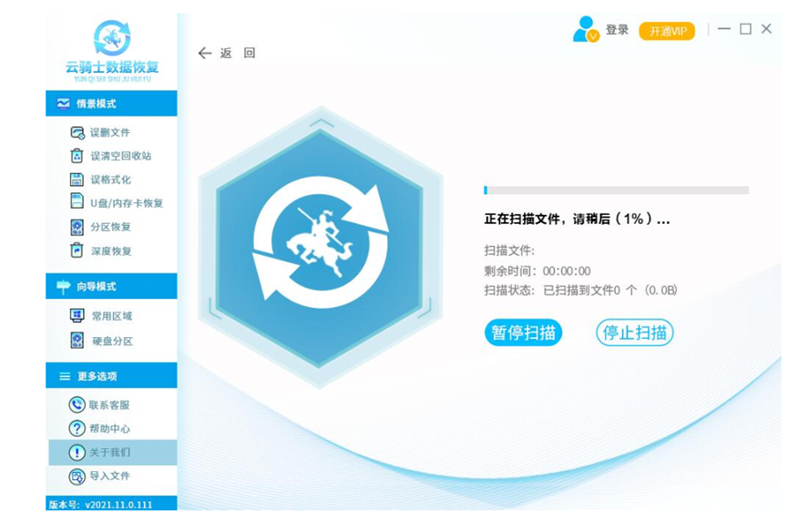 云騎士數據恢復軟件是一款可快速掃描預覽、精準恢復數據的電腦應用軟件,適用多種恢復場景,廣泛恢復類型,能夠保護數據安全,并且提供專業的技術咨詢。軟件支持硬盤、U盤、內存卡、攝像機,行車記錄儀等各種設備。操作簡單易懂,可根據數據丟失情況,選擇一個合適的模式進行恢復。