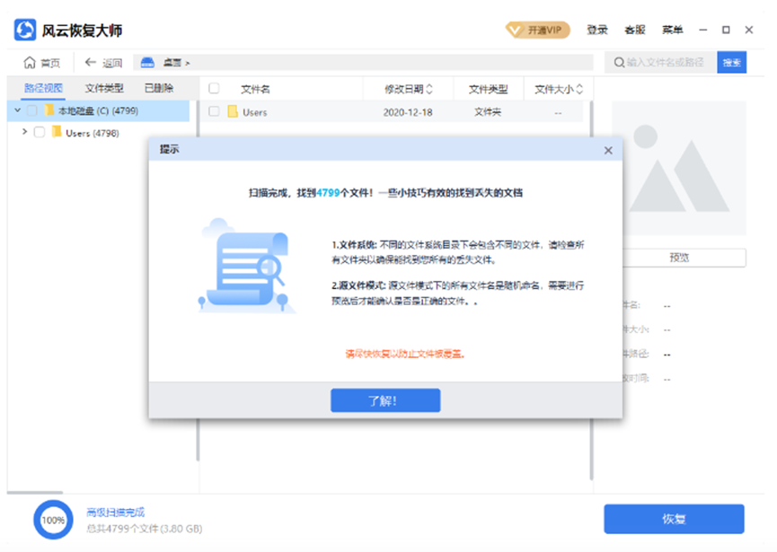 風云恢復大師是一款可以幫助用戶恢復文件的PC軟件,已刪除或者是找不到的文件只要通過軟件進行全面且高效的掃描,就可以輕松恢復。