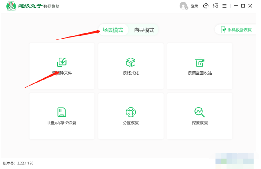 1、首先我們可以進入到軟件的頁面中,可以看到頁面上有【場景模式】和【向導模式】。