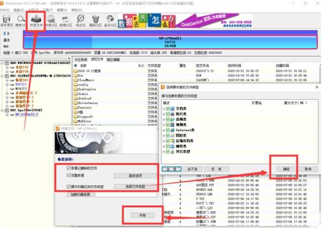 1、首先把移動硬盤插入電腦里,打開DiskGenius之后,選定移動硬盤,找到左上方的,對跳出的選項進行選擇之后,即可開始搜索移動硬盤里的所有數據。