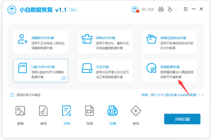 我們以最近比較熱門的小白數據恢復軟件為例,給大家介紹下蘋果電腦數據恢復的操作方法,這里就以深度數據恢復為例,具體步驟可參照:小白數據恢復磁盤數據的方法。