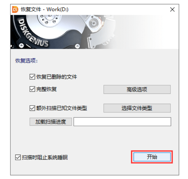 2、我們鼠標點擊“開始”按鈕進行掃描。